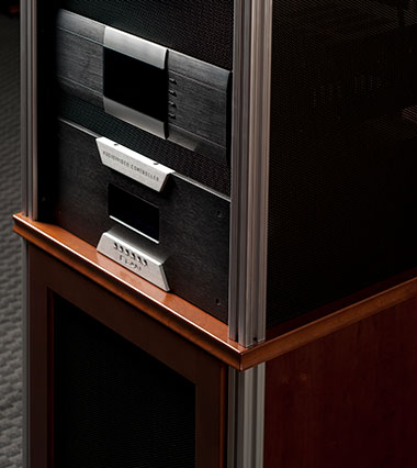 Personalize the appearance of the Synergy System by choosing your favorite wood finishes, posts, door inserts and side panels. The selection of all of these parts is up to you. Salamander delivers furniture that is “truly custom, precisely yours”.